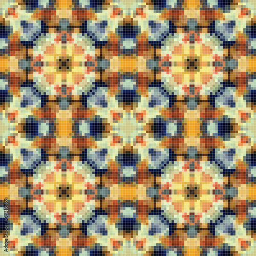 © Cubydesign, Fototapeta premium Pixel mosaic seamless pattern design, Repeat textile design.