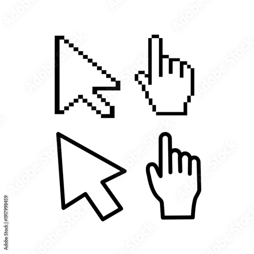 © Olga, Obraz premium Pixel mouse cursor and hand pointer icon. Clipart image isolated on white background. Vector 10 eps.