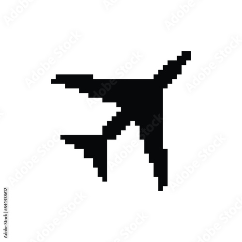 Fototapeta premium pixel plane icon. Vector pixel art airplane 8 bit game logo for company
