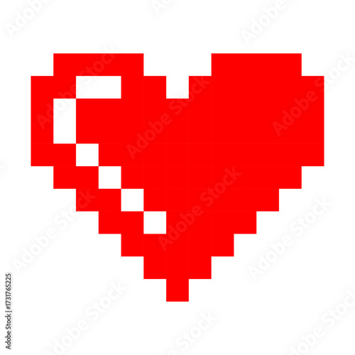 © _Ligrenok, Obraz premium Pixel red heart with diagonal white stripe outline in retro style digital icon