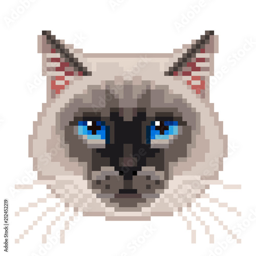 © La Gorda, Obraz premium Pixel siamese cat face isolated vector