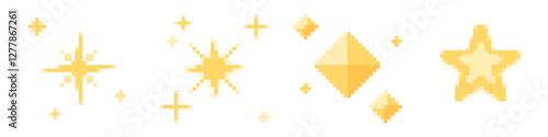 Obraz premium Pixel stars set - glowing yellow shapes in different geometric forms,...