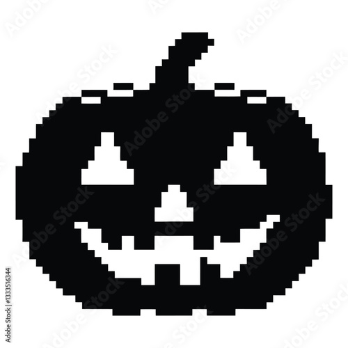 Fototapeta premium Pixel Style Pumpkin Silhouette, Vector, Icon, Logo, White Background.