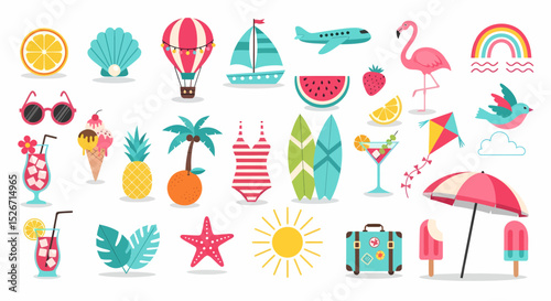 © Anita, Obraz premium Pixel Summer Vacation Holiday Elements Isolated on White Background