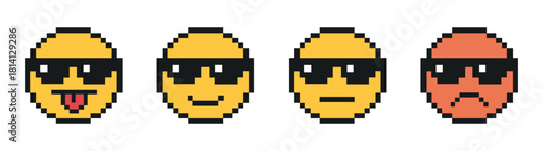 Obraz premium Pixel sunglasses emoji set with different emotions in retro style on...