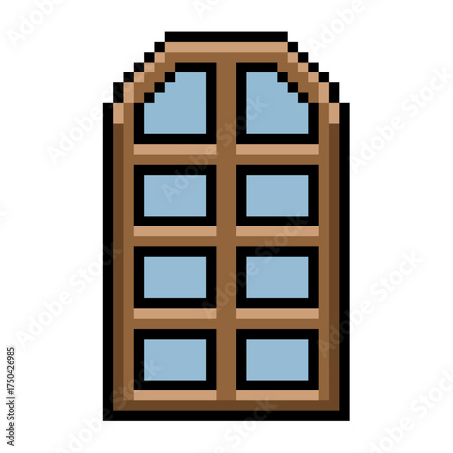 Obraz premium Pixel window icon vector. Ideal for application interface, software, and view themes. This digital graphic is perfect for game, retro game, or 8 bit design projects and assets.
