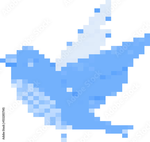 Obraz premium Pixelated bird is flying in flat style, featuring blocky blue pixels on transparent background