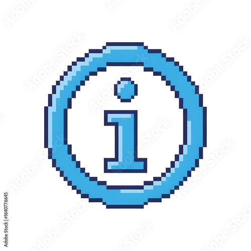 © KARIMA, Obraz premium Pixelated Blue Information Icon with Circular Frame.