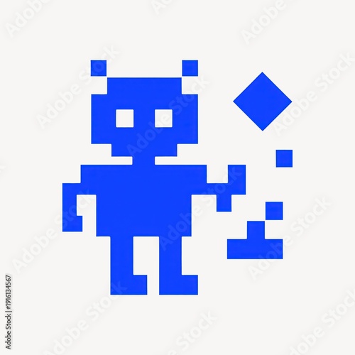 Obraz premium Pixelated blue robot illustration.