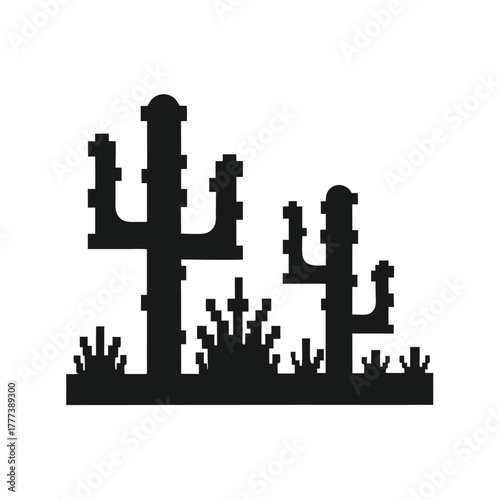© SWORNALY, Obraz premium Pixelated Cactus Silhouette Vector, Desert Plants, Western Landscape, White Background