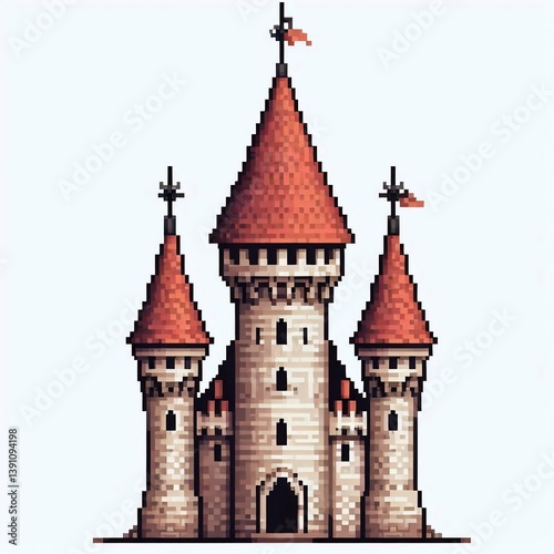 Fototapeta premium Pixelated Castle with Red Roofs suitable for digital content