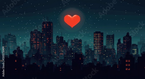 Fototapeta premium Pixelated city at night with glowing heart