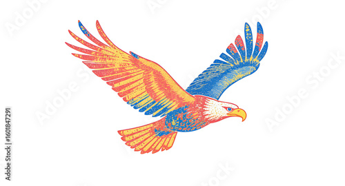 Obraz premium Pixelated Eagle Illustration Featuring Yellow and Blue Color with Wings...