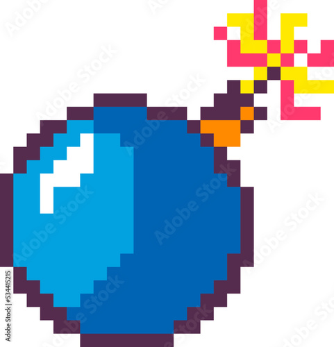 Obraz premium Pixelated exploding bomb, weapons for arcades
