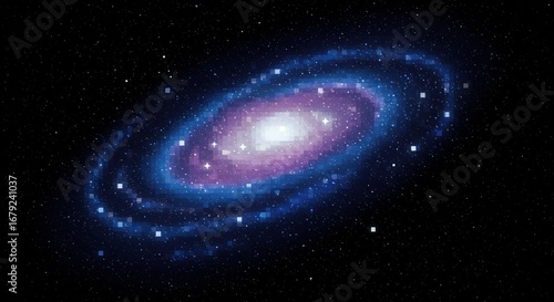 Naklejka premium Pixelated Galaxy in Space with Stars and Blue Hues