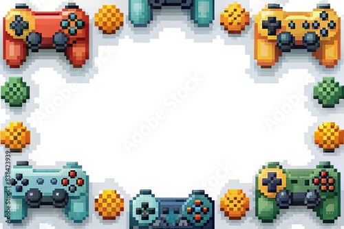 © Jason, Obraz premium pixelated game controllers frame border with blank space