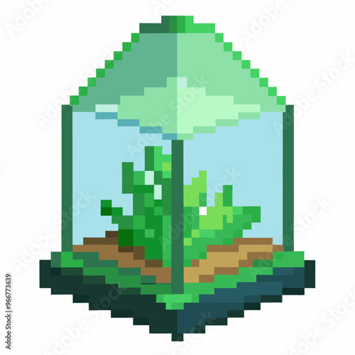 Fototapeta premium Pixelated Greenhouse with Plants in Retro Video Game Style
