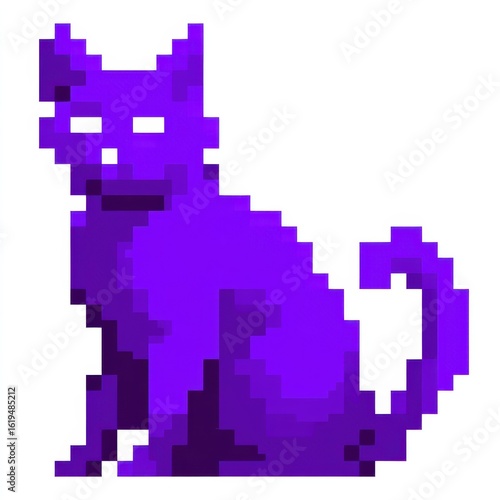 © Enjoy, Obraz premium Pixelated Purple Cat on White Background