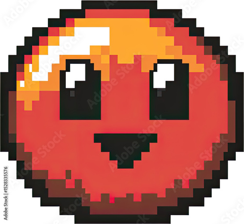 © NikahGeh, Obraz premium Pixelated red ball with a happy expression.