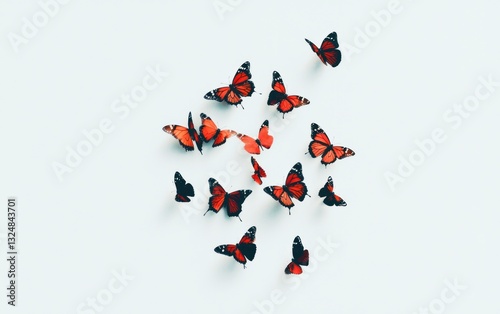 © creatfive, Naklejka premium Pixelated Red Butterflies on White Background