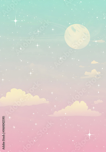 © Siasart, Fototapeta premium Pixelated Sky Illustration Pastel Colors Clouds Moon And Stars Background