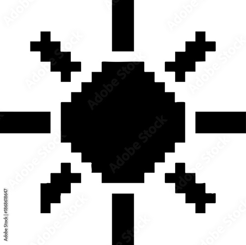 © Rizzz, Fototapeta premium Pixelated Sun Icon Black Graphic Interface Element