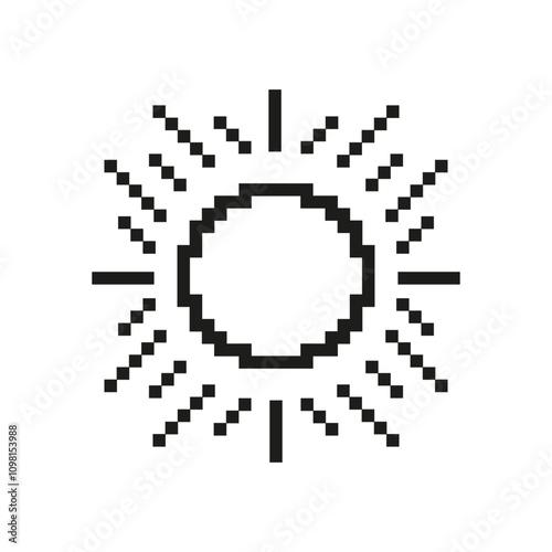© gentle studio, Fototapeta premium Pixelated Sun Icon with Radiating Rays. Bright Sunlight in Pixel Art Style. Solar Energy and Light. Isolated Vector Illustration