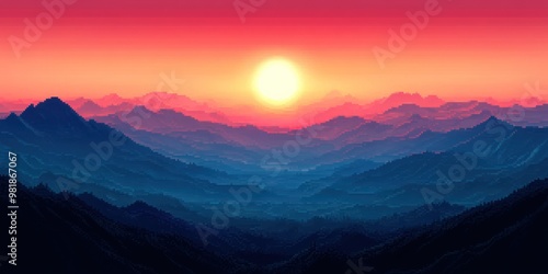 © novian, Fototapeta premium Pixelated Sunset Over a Mountain Range