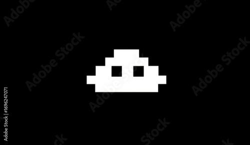 Obraz premium Pixelated white blob with two square eyes sits on a solid black background, evoking a minimalist, retro video game aesthetic