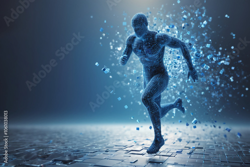 © Zsolt Biczó, Fototapeta premium Pixeled digital man running in virtual world