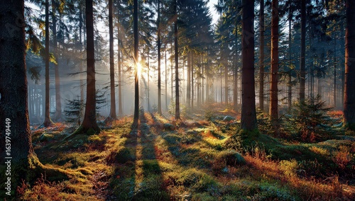 © harshada, Fototapeta premium Pixelized Forest Sunlight