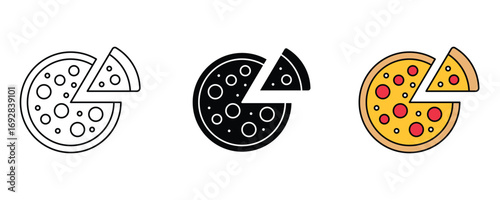© NH RIDOY, Naklejka premium Pizza icon set vector on white background. meal, dinner, lunch, restaurant, fast, eat, cheese, tomato, pepperoni, italian, cuisine, symbol.