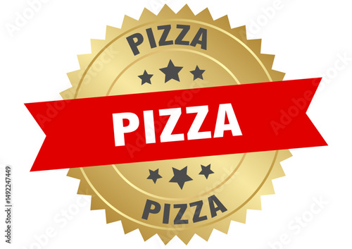 Obraz premium pizza. pizza round red and gold label isolated on transparent background