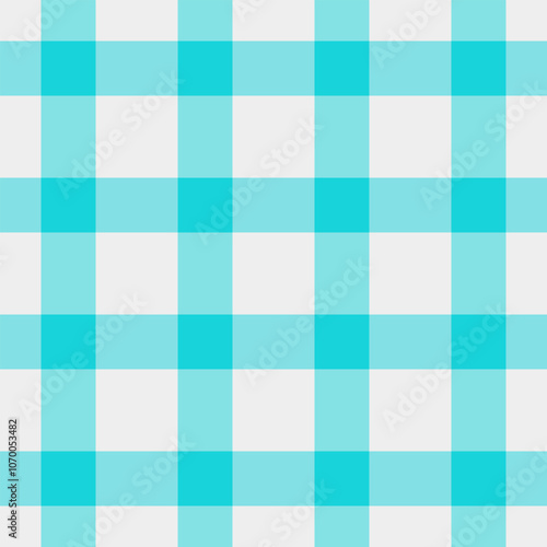 © SolaruS, Fototapeta premium Place seamless pattern textile, strip texture tartan fabric. African plaid background check vector in cyan and white colors.