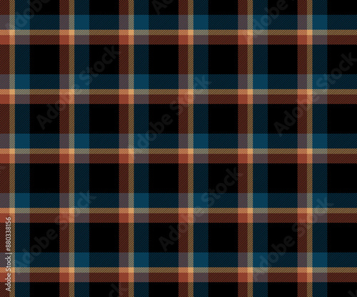 Obraz premium Plaid fabric pattern, black, blue, brown, yellow, seamless for textiles and design clothing, skirts, pants, aprons, tablecloths, blankets or decorative fabrics. Vector illustration.