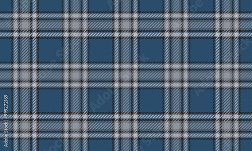 Fototapeta premium Plaid fabric pattern, blue, gray, black, seamless, cool contrasting lines pattern, for textiles, and for designing clothes, skirts, pants or decorative fabrics. Vector illustration.