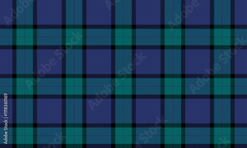 Fototapeta premium Plaid fabric pattern, blue, green, black, fashionable seamless cross lines pattern for textiles, and for designing clothes, skirts or decorative fabrics. Vector illustration.