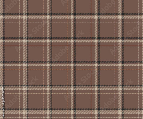 Obraz premium Plaid fabric pattern, brown, black, yellow, seamless background for textiles, clothing designs, skirts, pants or decorative fabrics. Vector illustration.
