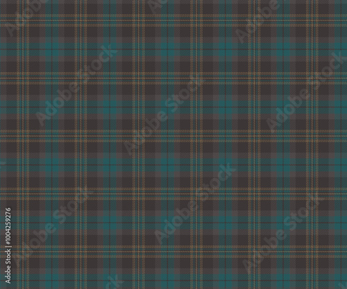 © subin, Fototapeta premium Plaid fabric pattern, brown, green, yellow, prominent in the cross-line pattern, seamless for textiles, and for designing clothes, skirts or decorative fabrics. Vector illustration.