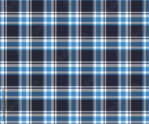 Fototapeta premium Plaid fabric pattern, navy blue, blue, white, cross lines, seamless for textiles, and for designing clothes, skirts or decorative fabrics. Vector illustration.