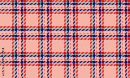 Fototapeta premium Plaid fabric pattern, pink, blue, red, seamless for textiles, and for designing clothes, skirts, tablecloths, or decorative fabrics. Vector illustration.