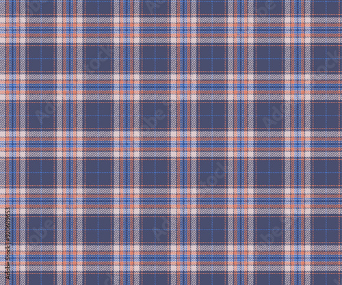 © subin, Fototapeta premium Plaid fabric pattern, purple, blue, orange, white, seamless for textiles and design clothing, skirts, pants, aprons, tablecloths, blankets or decorative fabrics. Vector illustration.