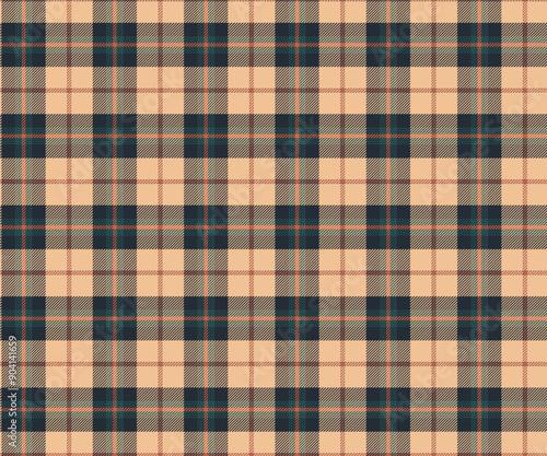 © subin, Obraz premium Plaid pattern, yellow, navy, orange, seamless for textiles and designing clothing, skirts, pants, aprons, tablecloths, blankets or decorative fabrics. Vector illustration.