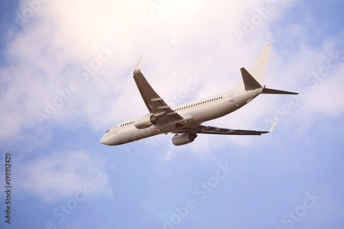 Obraz premium plain passenger airplane starting in a cloudscape