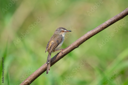 © joesayhello, Fototapeta premium Plain Prinia or White-browed Prinia with blur green background