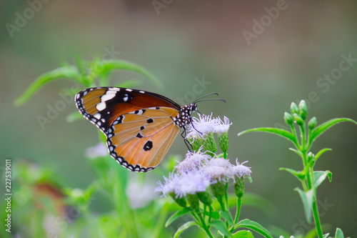 Fototapeta premium Plain Tiger butterfly sitting on the flower plant with a nice soft...