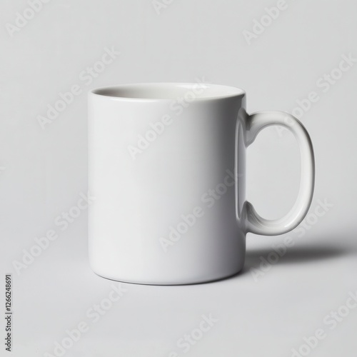 © MILKY_PS, Obraz premium Plain White Ceramic Mug on Light Gray Background