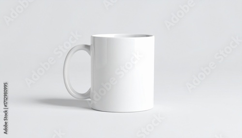 © Verse, Fototapeta premium Plain white ceramic mug on light gray background, minimalist and customizable product mockup.