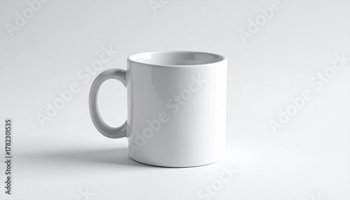 Fototapeta premium Plain white ceramic mug on light gray surface with neutral background showcasing minimalist clarity and customization potential