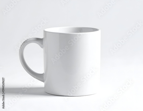 Obraz premium Plain white ceramic mug with handle against a soft white background